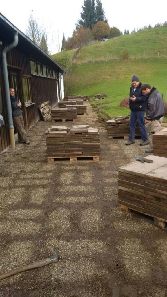 An den beiden letzten Wochenenden ist wieder allerhand geschehen. So wurde kurz vor dem Wintereinbruch noch das restliche Pflaster vor dem Kiosk ausgebaut und auf dem Parkplatz gelagert.