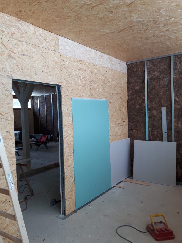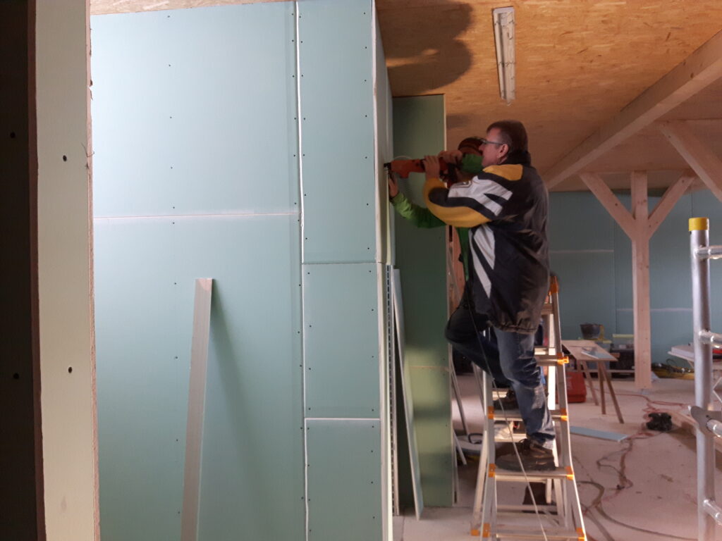 Auch an diesem Wochenende waren wir wieder fleißig. Wir konnten eine Wand im Büro Bademeister, und einige Wände zum Ausgang Schwimmbecken schließen. Jetzt haben wir noch für einen halben Tag Arbeit. Dann müssen erst die Sanitärinstallationen in den Nassbereichen montiert werden. Das wird von einer Fachfirma übernommen.